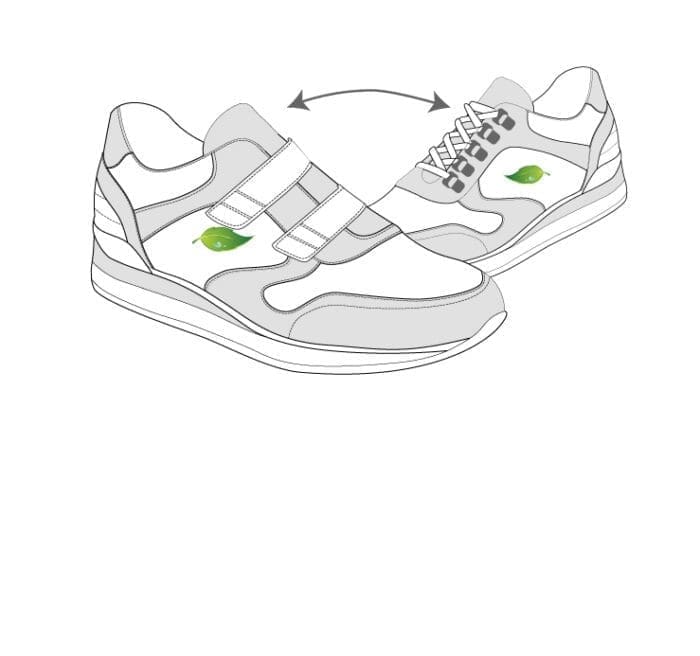 Replace laces with Velcro straps. Also can change Velcro to laces.